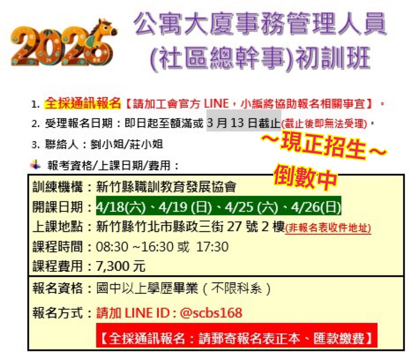 114年度8月公寓大厦三證班(事務管理人員/防火避難設施管理人員/設備安全管理人員)衝刺班!! !!技術類人員或三證人員優先錄取!! (7/23截止,額滿提早截止不另行通知)
