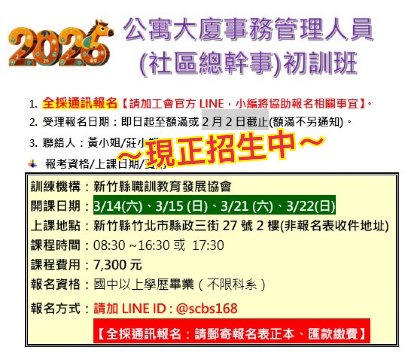 更名或換發身分證,其資料與上列文件不符者,請檢附三個月內之戶籍謄本正本。 l如未達開班人數,本會保留開班權力,如停班或延期將主動通知辦理延期或退費。